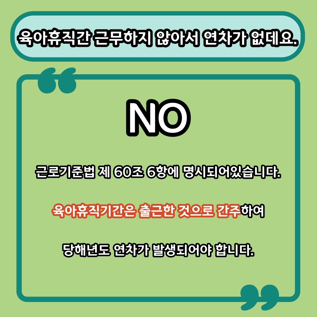 모르시는 분들이 그동안 '휴직을 해서 1년에 80%이상 근무일수를 채우지 못해서 연차가 생성되지 않아 연차가 없다'라고 말하는데요.