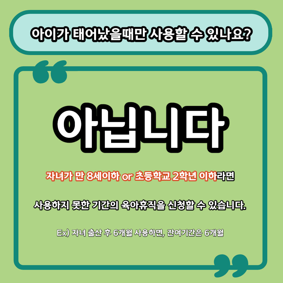 육아휴직의 목적이 '자녀양육'인점 꼭 기억하세요!