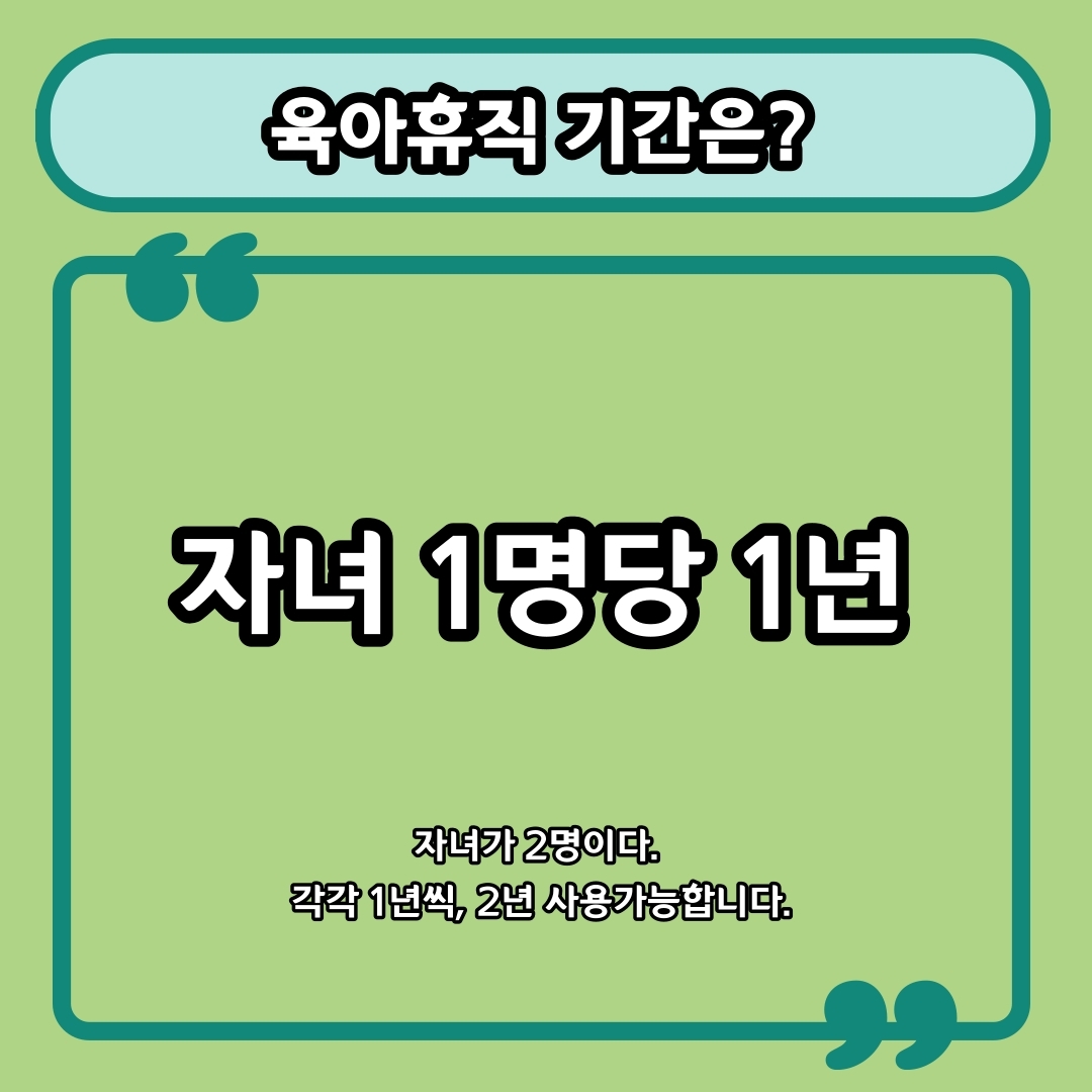 자녀 1명당 육아휴직이 가능하며, 각 1년씩 사용 가능합니다.
