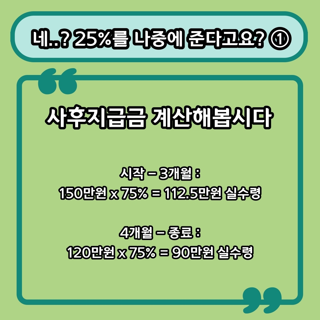 육아휴직 사후지급금을 계산해보려고 하면 80%의 25%, 50%의 25%라느니 뭔가 복잡하잖아요?